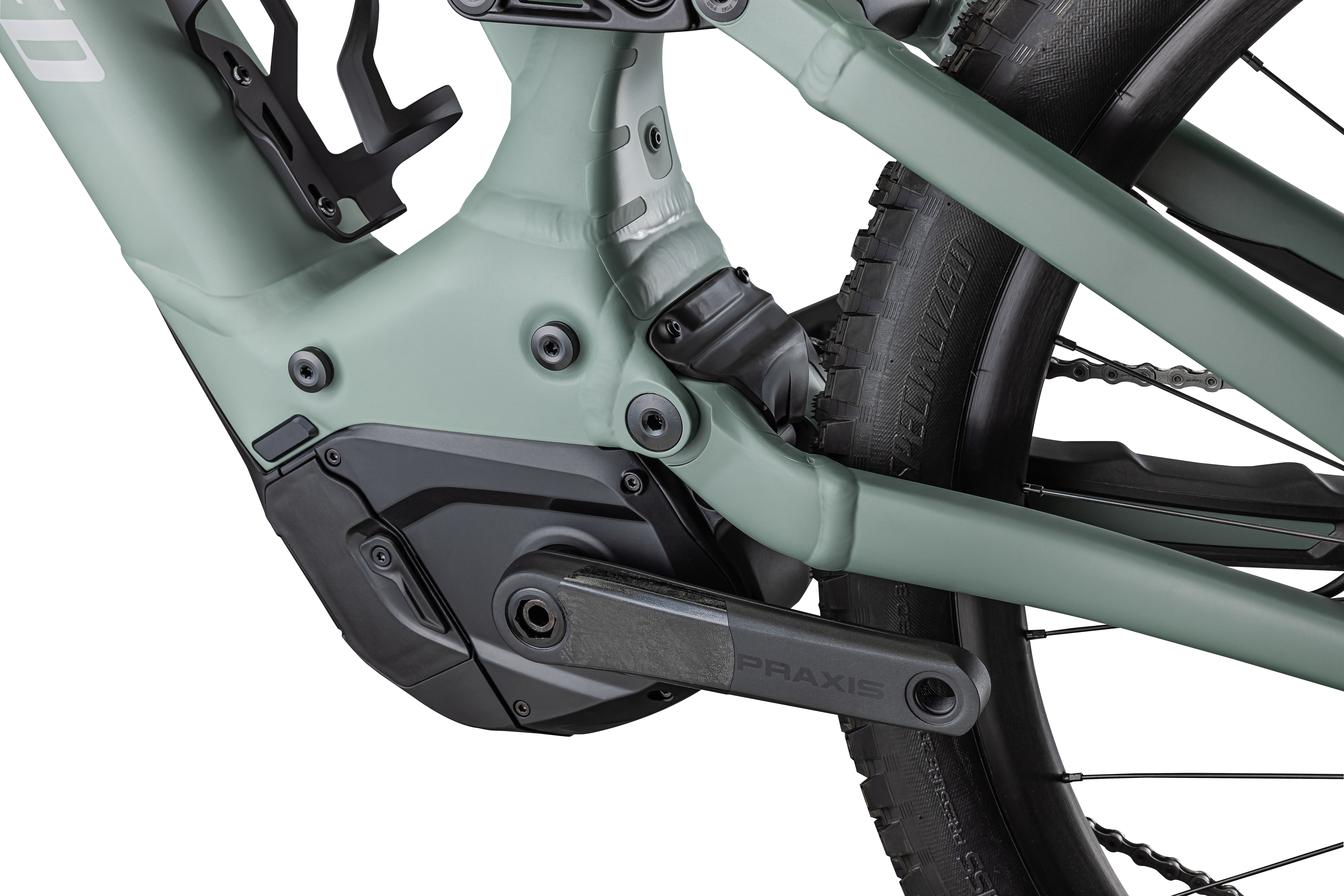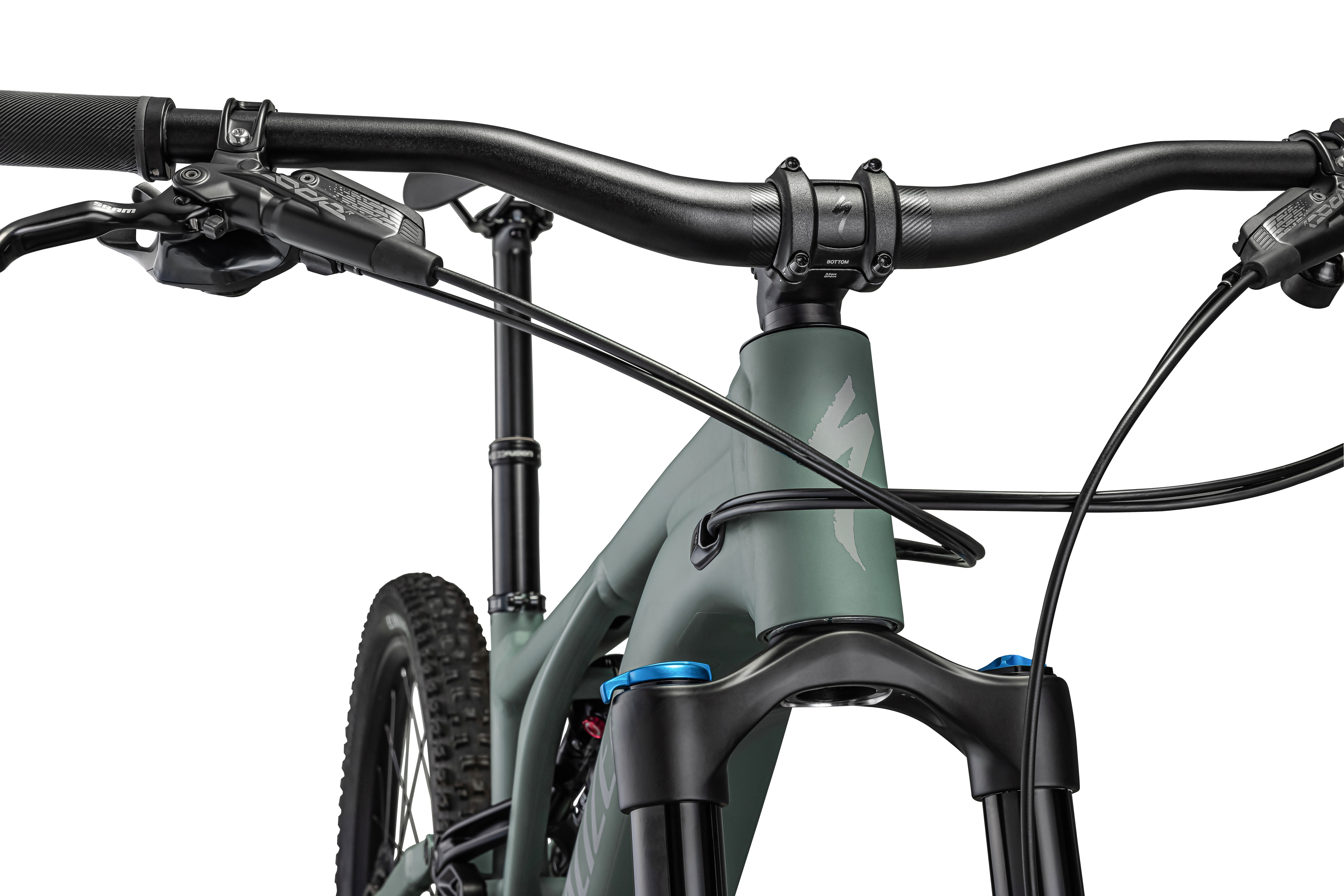 FAHRRAD-SPEZIFIKATIONENFrame: Specialized M5 premium alloy, headset adjust, BB height adjust, S-Sizing, internal cable routing, 150mm travel, 148mm spacingRear Shock: S1: FOX DPS Performance Series, 3-position lever, rebound adjust, 52.5x210mm, S2-S6: FOX FLOAT X Performance, LSR, 2-position lever, 55x210mmFork: Fox Rhythm 36, S1: 150mm travel, S2-S6: 160mm travelStem: Alloy Trail Stem, 35mm bar boreHandlebars: Alloy, 35mm diameter, 780mm width, 8-degree backsweep, 6-degree upsweepTape: Specialized Trail GripsSaddle: Bridge Comp, Hollow Cr-mo rails, 155/143mmFront Brake: SRAM Code R, 4-piston caliper, hydraulic disc, S1-S3: 200mm, S4-S6: 220mmRear Brake: SRAM Code R, 4-piston caliper, hydraulic disc, 200mmRear Derailleur: SRAM GX Eagle, 12-speedShift Levers: SRAM GX Eagle, 12-speedCassette: SRAM XG-1275, 12-speed, 10-52tChain: SRAM NX Eagle, 12-speedCrankset: Praxis forged M30, custom offset, 160mmChainrings: SRAM X-Sync Eagle, 104 BCD, 32T, steelRims: Specialized 29, hookless alloy, 30mm inner width, tubeless readyFront Hub: Alloy, sealed cartridge bearings, 15x110mm thru-axle, 28hRear Hub: Alloy, sealed cartridge bearings, 148mmx12mm thru-axle, 28hSpokes: DT Swiss IndustryFront Tire: Butcher, GRID TRAIL casing, GRIPTON® T9 compound, 2Bliss Ready, 29×2.6″Rear Tire: Eliminator, GRID TRAIL casing, GRIPTON® T7 compound, 2Bliss Ready, 27.5×2.6″Inner Tubes: Standard, Presta ValveSeatPost: X-Fusion Manic, infinite adjustable, two-bolt head, bottom mount cable routing, remote SLR LE lever, 34.9, S1: 100mm, S2: 125mm, S3: 150mm, S4/S5: 175mm, S6: 190mmSeat Binder: Alloy, 38.6mmMotor: Specialized Turbo Full Power System 2.2 MotorUI/Remote: Specialized TCU, 10-LED State of charge, 3-LED Ride Mode display, ANT+/Bluetooth®, w/Handlebar remote: