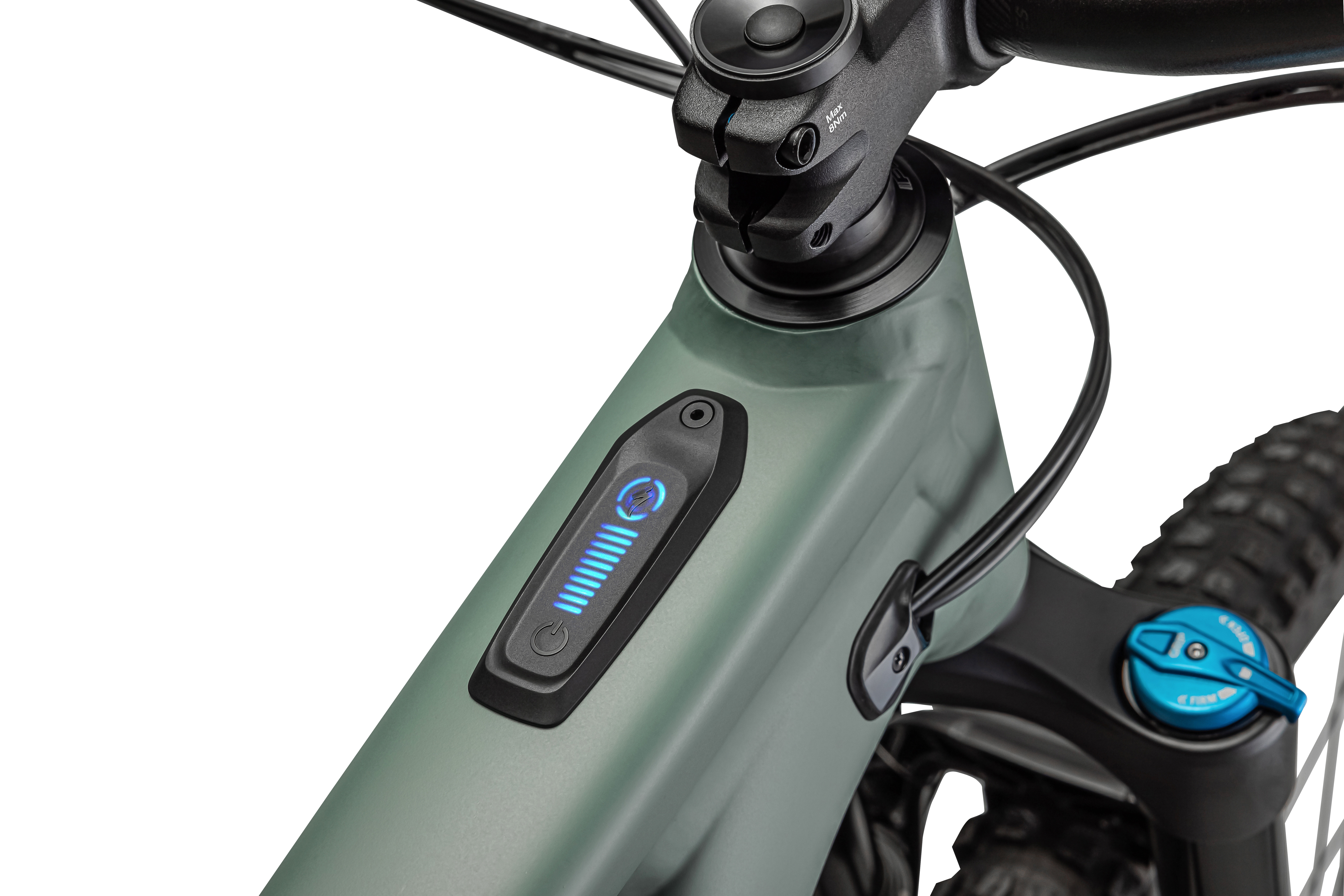 - Die Turbo Connect Unit („TCU“) des Turbo Levo ist mehr als eine „Ein-Aus“-Taste — sie ist das Gehirn des Fahrrads. Die TCU zeigt dir den Batteriestand und den Power-Assist-Modus an. Über ANT + / Bluetooth® kommuniziert es auch mit unserem optionalen Lenker-Display, um noch mehr Informationen über deinen Ride anzuzeigen.