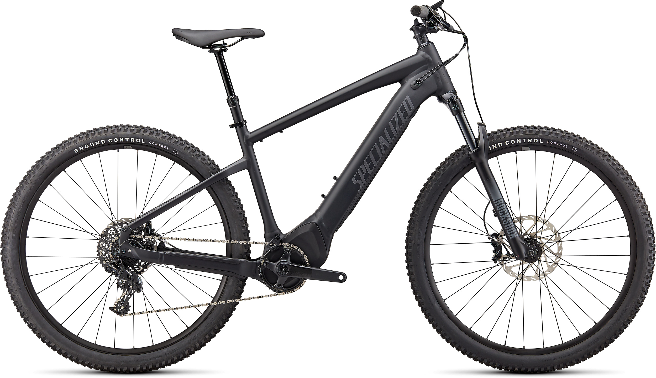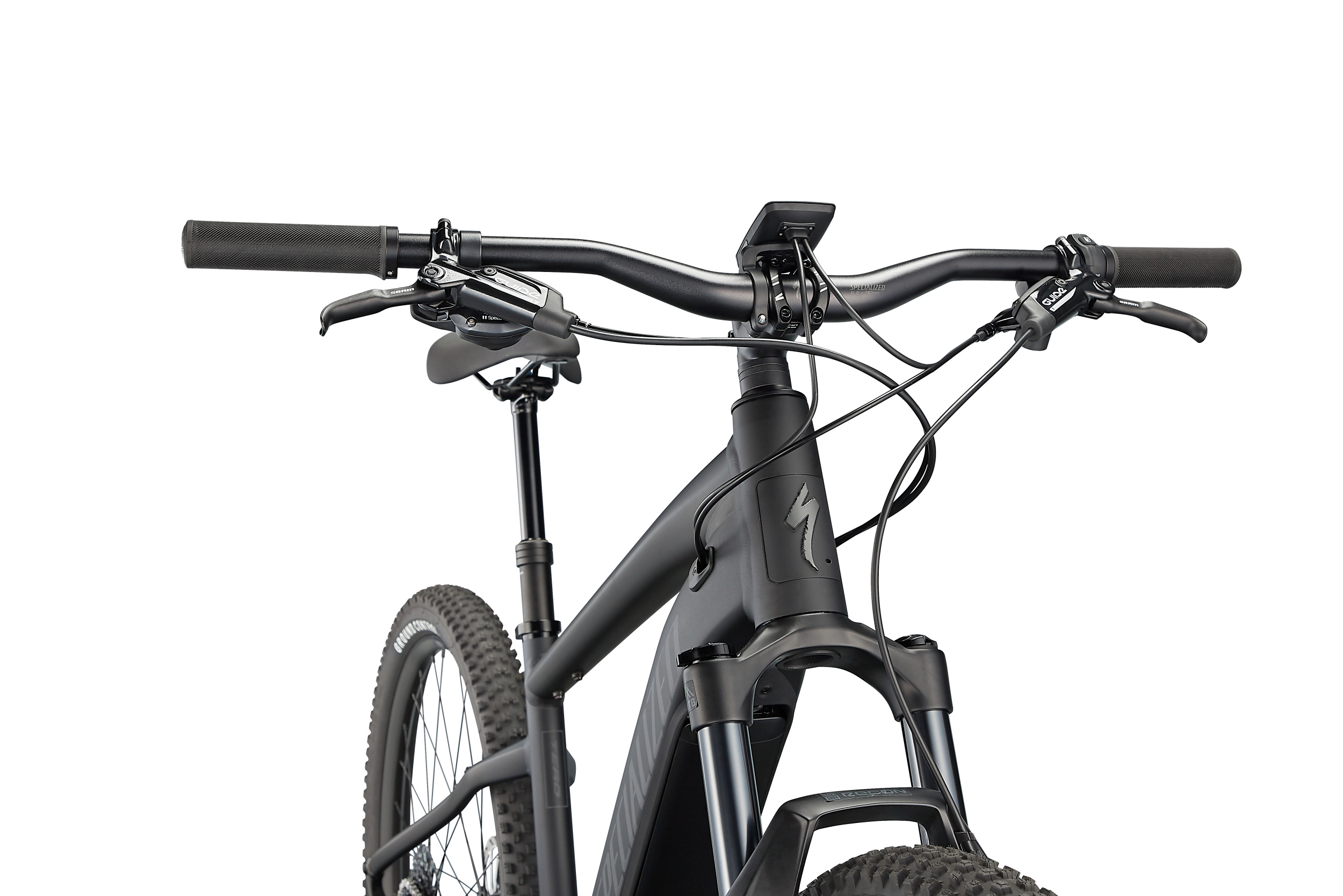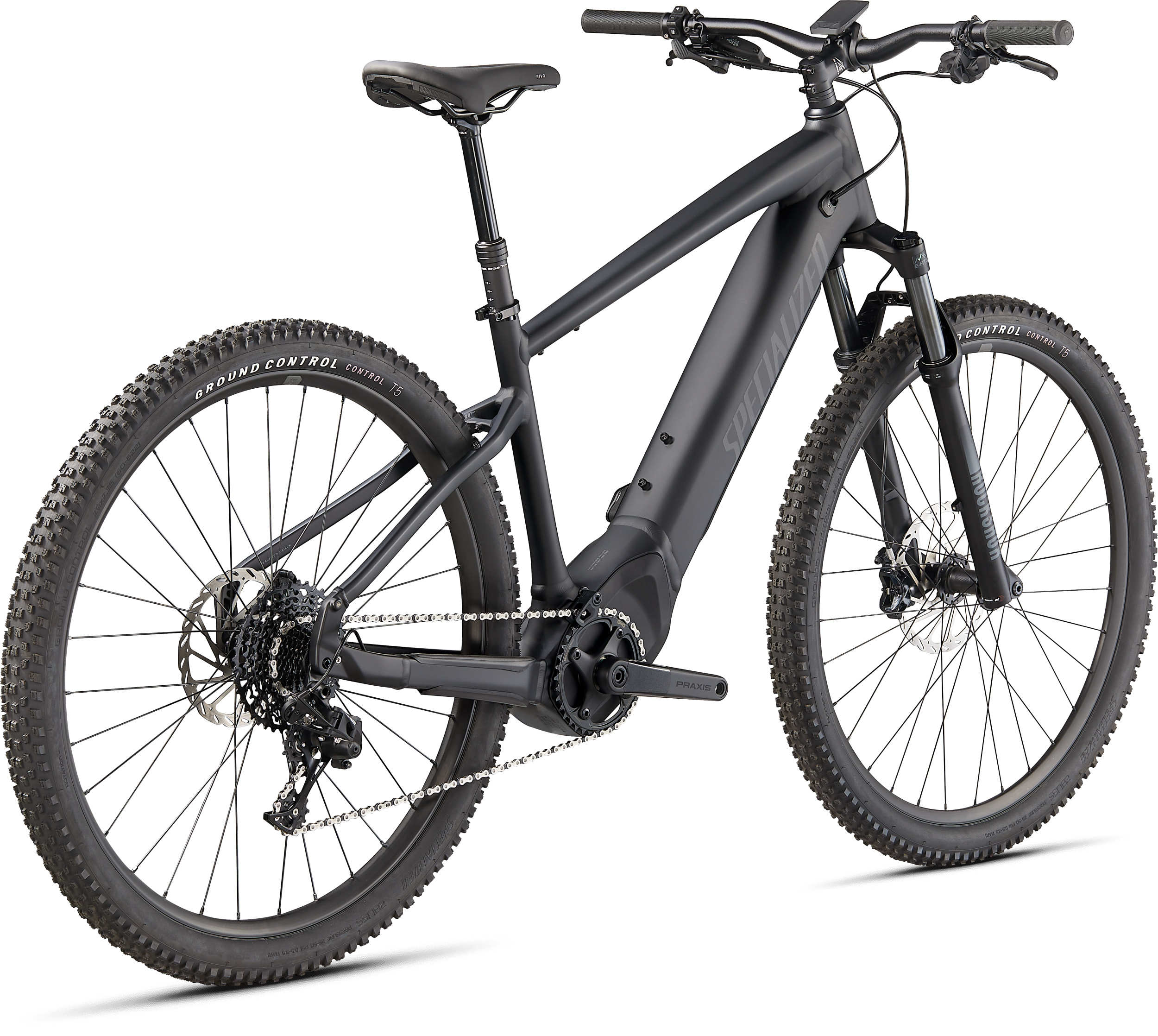 FAHRRAD-SPEZIFIKATIONENFrame: E5 Aluminum, bottom bracket motor mount, fully integrated &lockable downtube battery, internal cable routing, lock and front rack mountFork: Rockshox Recon Silver TK, 110mm travel, Motion-ControlStem: Stout 3D-forged alloy, 31.8mm, 6-degree riseTape: Specialized Trail Grips, Lock-onHandlebars: Specialized Trail, 6061 alloy, 8-degree backsweep, 6-degree upsweep, 27mm rise, 31.8mm clamp, S 720mm, M-XL 750mmFront Brake: SRAM Guide T, 4-piston caliper, hydraulic disc, 200mmRear Brake: SRAM Guide T, 4-piston caliper, hydraulic disc, 180mmShift Levers: SRAM NX, 11-speed triggerChain: KMC e11S, 11-speed w/ Missing Link™Rear Derailleur :SRAM NX, 11-speedCrankset: Custom alloy forged crankarmsCassette: SRAM PG-1130, 11-speed, 11-42tChainrings: Praxis, 36T, 104BCDPedals: Specialized Body Geometry Fitness, platform, plasticRims: Stout XC 29, 25mm internal width, disc-specificFront Hub: Specialized alloy front hub disc, sealed cardridge bearings, 6-bolt, 15x110mm thru-axle, 32hRear Hub: Specialized alloy rear hub disc, sealed cardridge bearings, 6-bolt, 12x148mm thru-axle, 32hSpokes: DT Swiss IndustryFront Tire: Ground Control, 2Bliss Ready, 29×2.35″Rear Tire: Ground Control, 2Bliss Ready, 29×2.35″Inner Tubes: Presta, 48mm valveSeatPost: TranzX Dropper, 30.9mm, S: 100mm, M-XL: 120mmSaddle: Rivo Sport, steel rails, 155mmSeat Binder: Alloy, bolt-type, 34.9mmMotor: Specialized 2.0, 70Nm torque, custom tuned motor, 250W nominalUI/Remote: MasterMind TCD, w/handlebar remote, built-in anti-theft feature, Bluetooth® connectivity, customizable display pagesBattery: Specialized U2-710, alloy casing, state of charge display, 710WhCharger: Custom charger, 42V4A w/ Rosenberger plug, 230VWiring Harness: Custom wire harnessBell: Simple bell