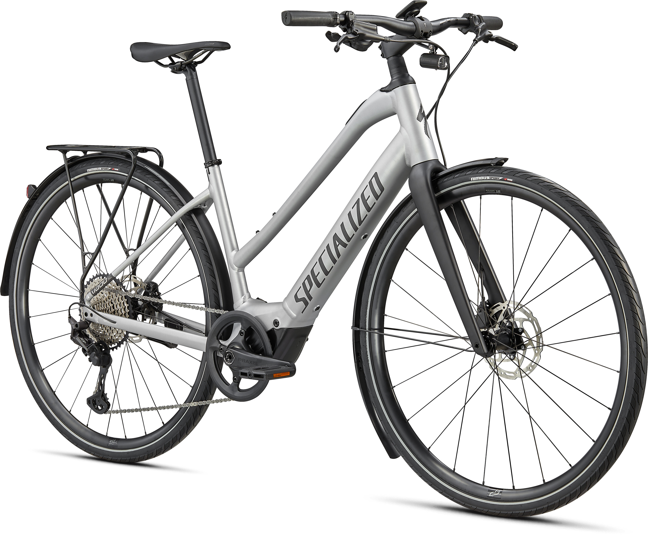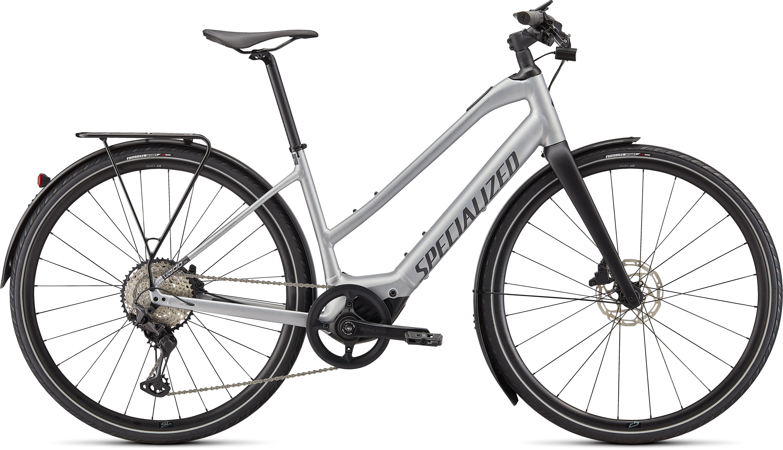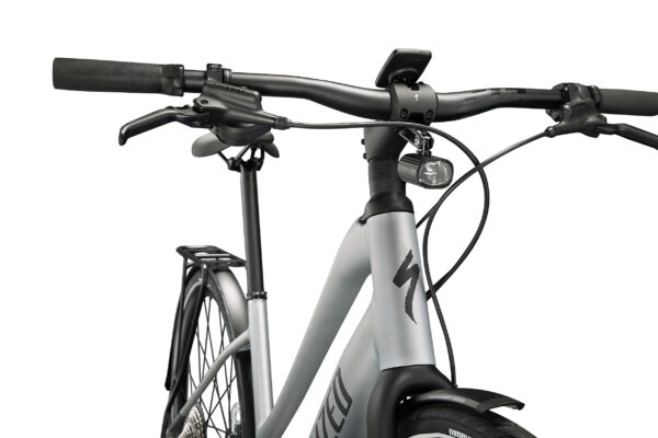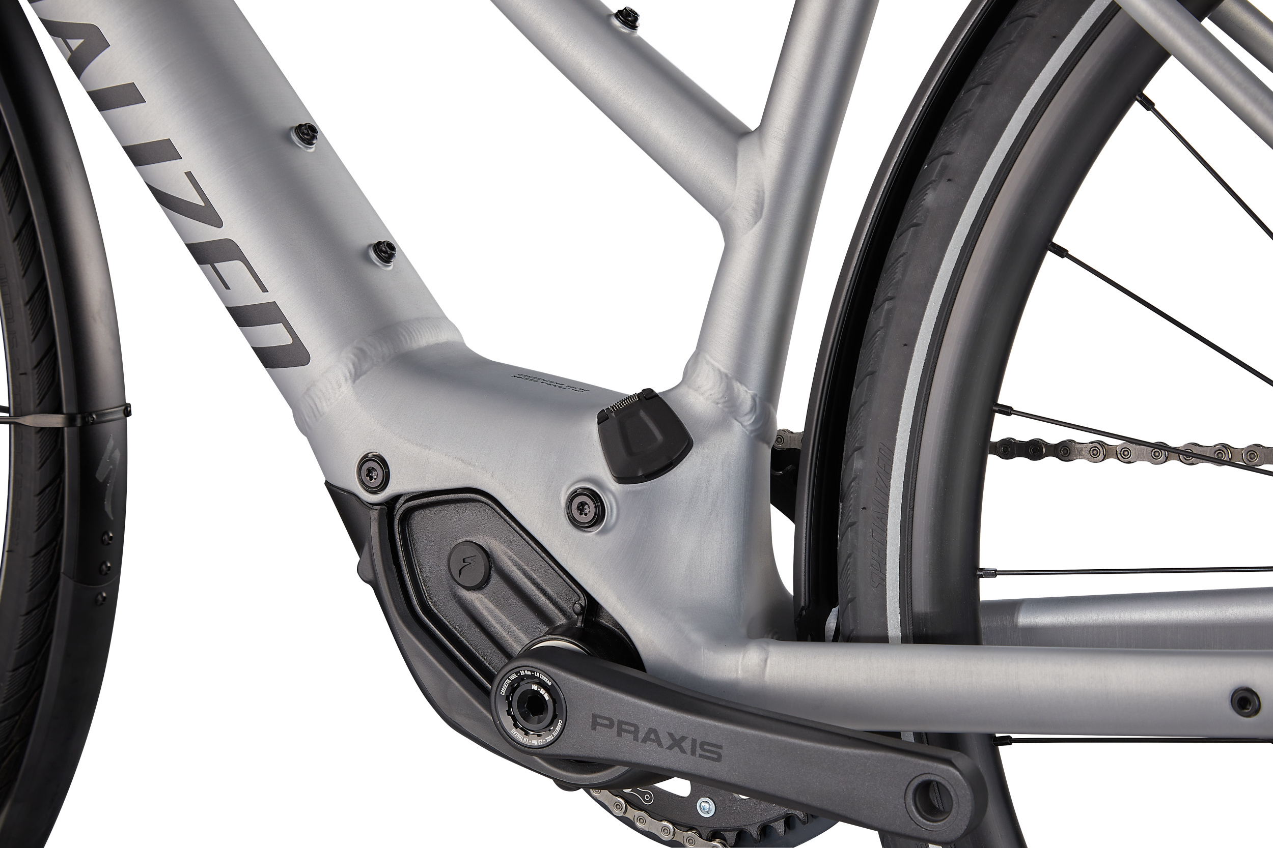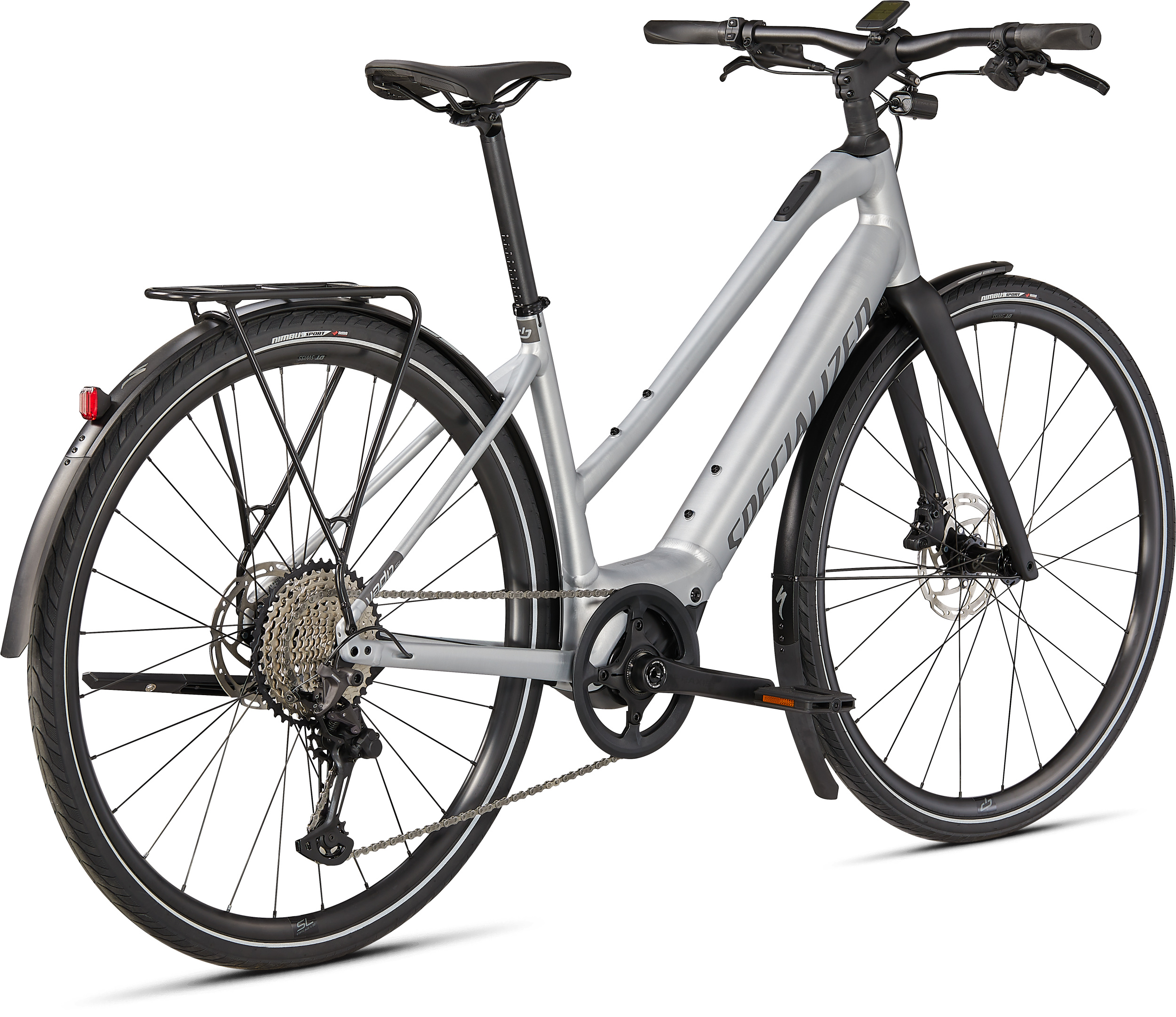 FRAMESETFork Rigid carbon fork, Boost™ 12x110mm thru-axle, flat mount disc Seat Binder Specialized Alloy, 30.8mm Frame E5 Aluminum, bottom bracket motor mount, fully integrated downtube battery, internal cable routing, fender and front rack mounts, Smooth Welds COCKPITStem Specialized Stealth Stem, alloy, 14 deg, 31.8mm, integrated TCD mount Handlebars Specialized, alloy, 9-degree backsweep, 15mm rise, 31.8mm Tape Specialized Body Geometry Contour, lock-on Saddle Bridge Sport, hollow cr-mo rails, 155mm SeatPost Specialized, alloy, 2-bolt, 12.5mm offset, 27.2mm BRAKESFront Brake Tektro HD-R510, hydraulic disc, 160mm Rear Brake Tektro HD-R510, hydraulic disc, 160mm DRIVETRAINRear Derailleur SRAM GX Eagle, 12-speed Shift Levers SRAM GX Eagle, 12-speed Cassette SRAM CS PG1230 EAGLE 11-50T Chain SRAM NX Eagle, 12-speed Crankset Praxis, Forged alloy M30, custom offset Chainrings Praxis, 44T, 110BCD ACCESSORIESPedals Specialized Commuter w/ grip tape & reflectors Headlight Lezyne Ebike Power STVZO E115, 310Lumens, 12V Taillight Lezyne Ebike Rear Fender STVZO, 11Lumens, 12V Kickstand Specialized kickstand, 40mm mount Rack Turbo SL Rack, Closed Platform, direct fender mount, Racktime-compatible, 15kg Fenders Specialized DryTech, Aluminum Bell Simple bell WHEELSRims DT Swiss R500 disc, 22mm internal width, 23mm internal depth Front Hub Specialized alloy front hub disc, sealed cartridge bearings, 12x110mm, Center Lock™, 24h Rear Hub Specialized alloy rear hub disc, Center Lock™, sealed cartridge bearings, 12x148mm, 28h Spokes DT Swiss Industry Front Tire Nimbus II Sport Reflect, 700x38mm Rear Tire Nimbus II Sport Reflect, 700x38mm WHEELS & TIRESInner Tubes Standard 40mm PV 700×32-50 E-BIKEMotor Specialized SL 1.1, custom lightweight motor Battery Specialized SL1-320, fully integrated, 320Wh Charger Custom charger, 48V System w/ SL system charger plug Wiring Harness Custom Specialized wiring harness w/ chargeport UI/Remote Specialized TCU2, TFT-screen, fully custom setup, ANT+/Bluetooth® * Spezifikationen sind Änderungen vorbehalten – Alternative mit Shimano 44-44 und Specialized TCU